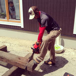 塗装が薄いので現場でキシラデコールを2度塗りし、タイヤなど重量物も置けるように床補強もしました。価格は98,600円(施工費込)