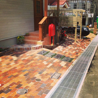 アプローチの両サイドが芝だったが、ご夫妻ともに忙しくなかな手入れが大変で、これを手間のかからない仕上げにするのがご依頼内容。