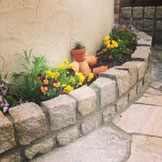 一段積みだった御影石の花壇を2段積みに。土もたっぷり入る様になりました。アクセントにポットドールを作ってみました。