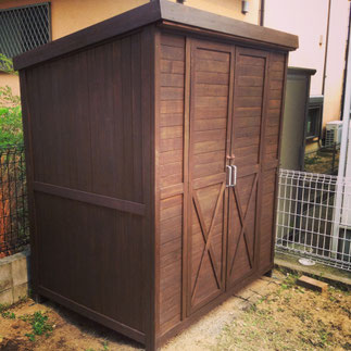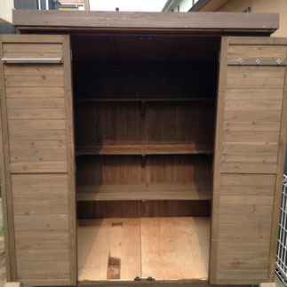 塗装が薄いので現場でキシラデコールを2度塗りし、タイヤなど重量物も置けるように床補強もしました。価格は98,600円(施工費込)